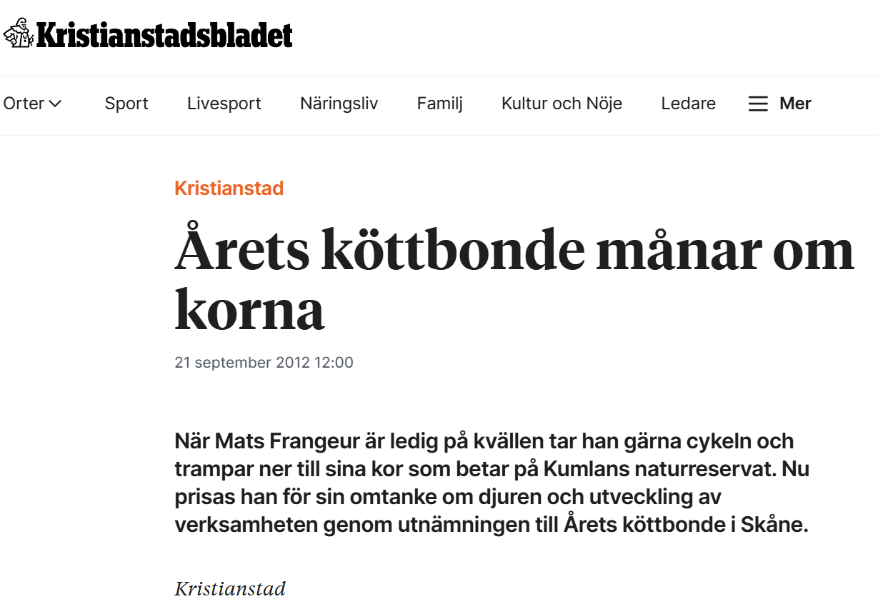 Mats Frangeur fick som andra generationens bonde på Månstorps gård mottaga utmärkelser både som mjökbonde och senare som nötköttsbonde. Mats har alltid haft en stark passion för korna. Detta har genomsyrat hans driv i att förvalta och utveckla Månstorp och kringliggande marker med korna och dess välmående i fokus.